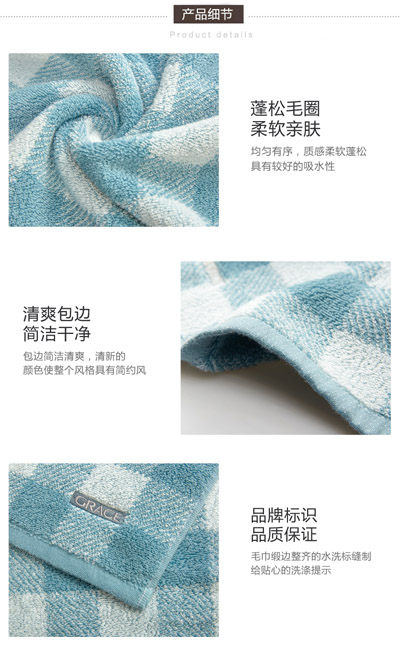 品牌: 洁丽雅(Grace)商品名称:洁丽雅家纺毛巾商品编号:6689247商品毛重:400.00g商品产地:浙江诸暨材质:纯棉分类:毛巾/面巾风格:素色简约工艺:毛圈